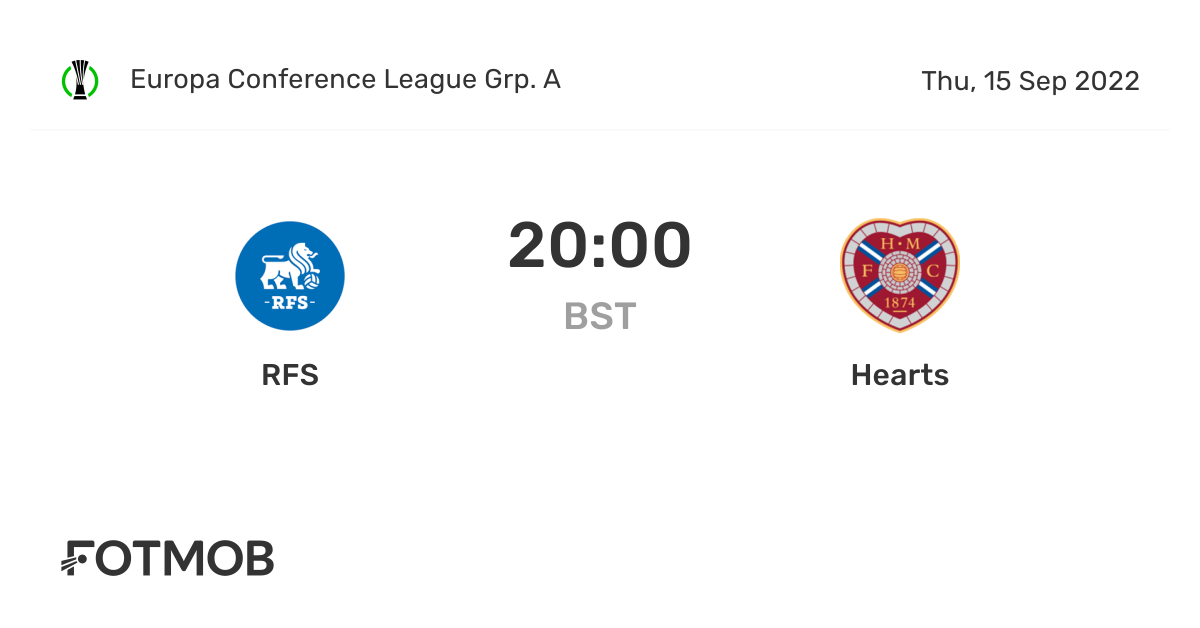 Hearts have lost their last five home games. Your live football score for RFS vs Hearts in the Group A from. UEFA Europa Conference League match Hearts vs.